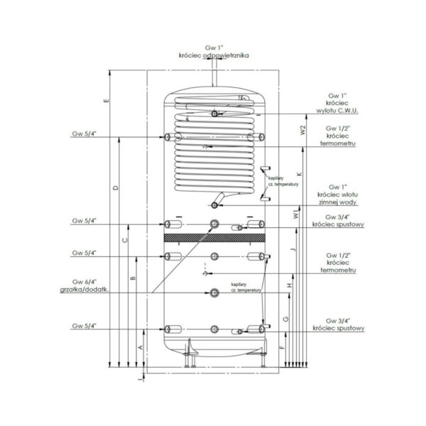 The KBW series tanks are a combination of the B and BW series tanks. KBW tanks are “2-in-1” units, available in 55-liter capacity, designed for domestic hot water (DHW) preparation.