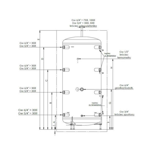 KOŁTON offers customers top-quality B-series tanks with capacities of 300, 500, 750, and 1000 liters, designed for storing hot central heating water.