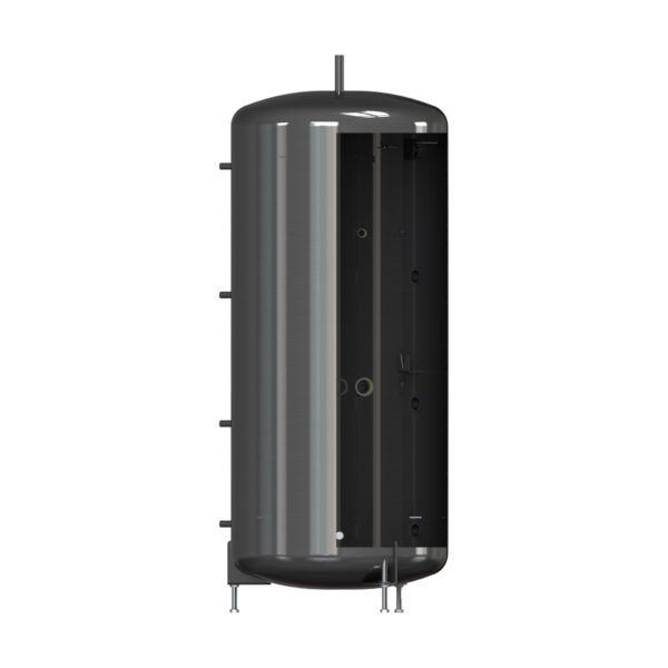 When operating with a solid fuel heat source, the role of the buffer tank is to store excess heat to ensure high efficiency of the heating device and to minimize boiler cycling. The tank also functions as a hydraulic separator.